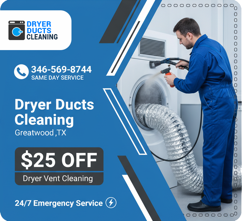 Protect your home and maximize your appliance efficiency with Greatwood Dryer Ducts Cleaning TX. We are the local specialists providing dryer ducts cleaning to prevent dangerous lint buildup. Choose our service to guarantee faster drying times and essential fire safety for your family.